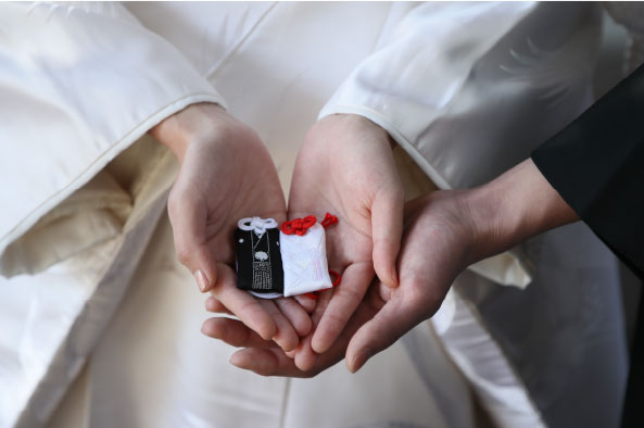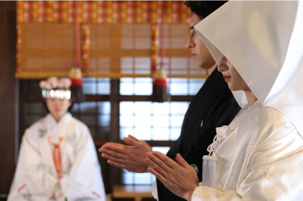 新しい命の誕生を控えながらも、ご自身の価値観から結婚式の意義を見出せず、なかなか決断できずにいたお二人。わたしはすぐに神社での神前式をおすすめしました。なぜなら私たち日本人はいつの時代も、暮らしの平安を願い、我が子の健やかな成長や子孫繁栄を神様に祈り続けてきたからです。